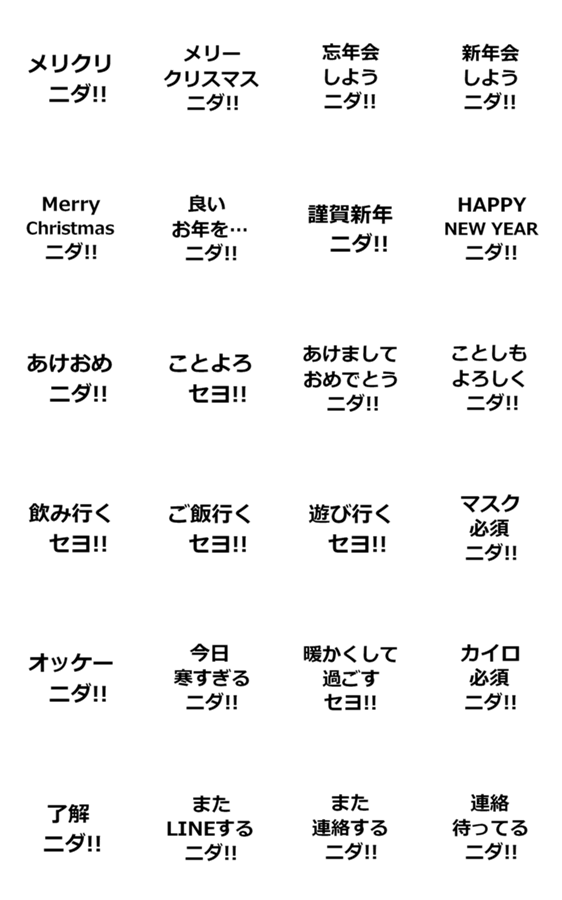 シンプル文字のみニダ! 気軽に使うセヨ(`・ω・´) 偽韓国語 毎年使える 冬イベント クリスマス 年末年始 お正月 あけおめニダ☆★文字が動くバージョンも販売中★☆