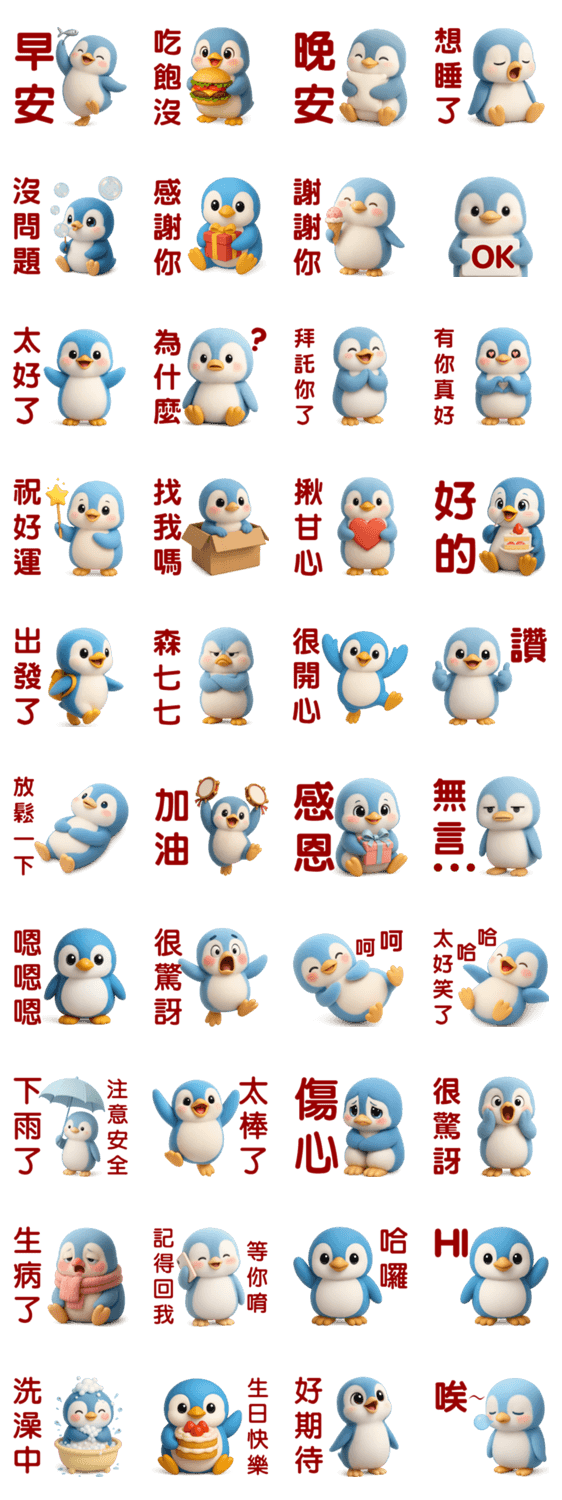 | スタンプ説明 | Cute Blue Penguin** Everyday Useful Stickers |