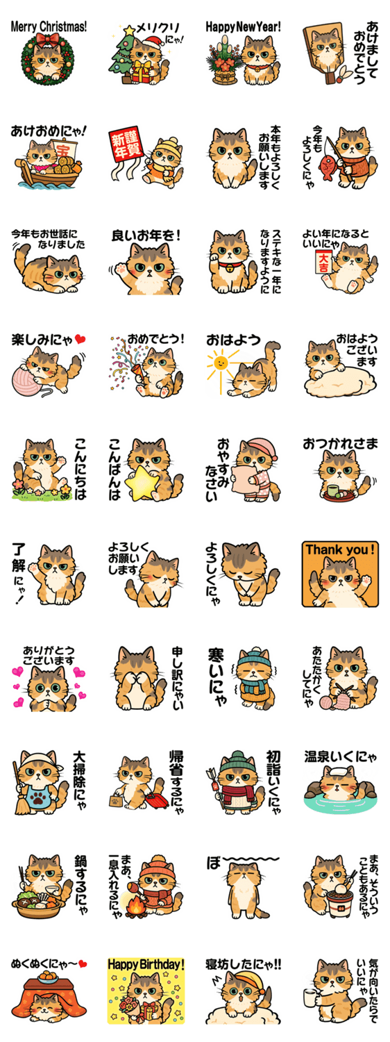 ツンデレ猫「はく」の冬スタンプです。 クリスマスや年末年始のあいさつから、 冬の日常まで使えます。