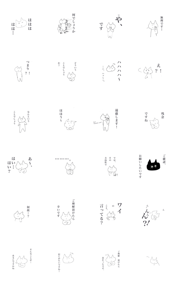 言いたいことを抑えないといけない場面でもネコが代わりに拒絶してくれるスタンプ
