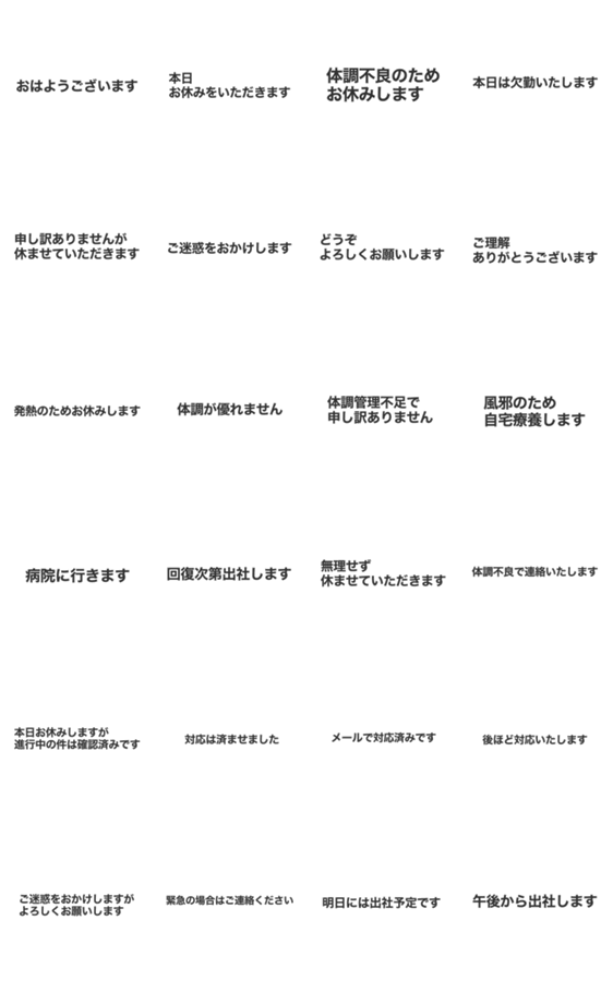 事を休む時に使える欠勤連絡スタンプ24