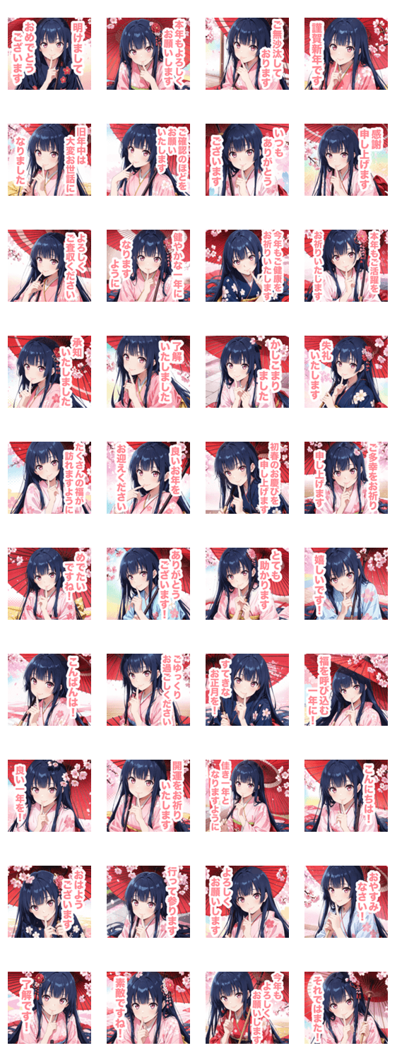 優雅なお正月の着物女子スタンプ -LINEスタンプマニア