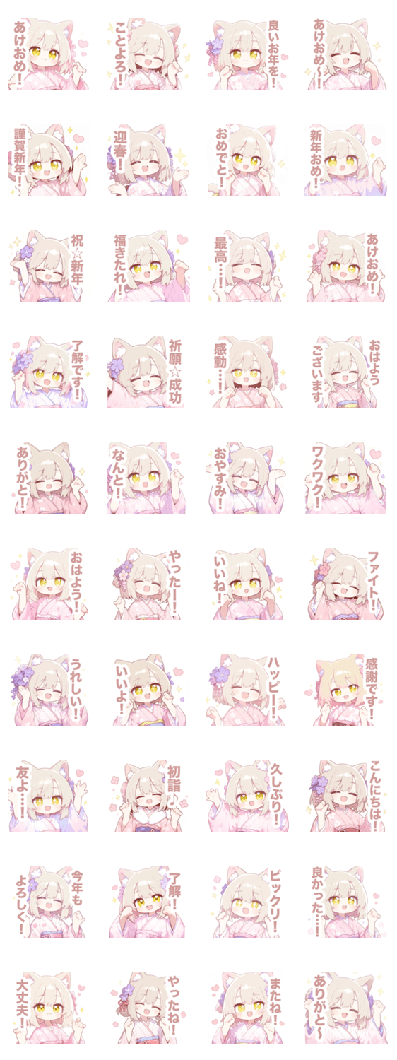 ベージュ猫の着物の女の子スタンプ -LINEスタンプマニア