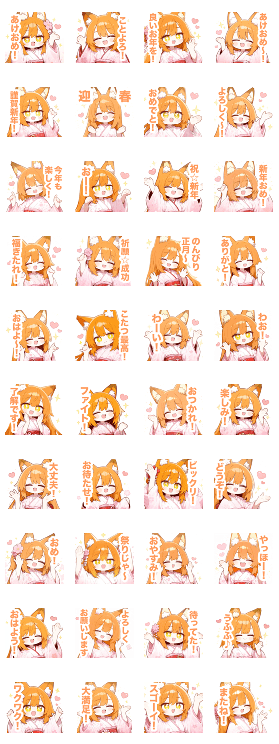オレンジ狐の着物の女の子スタンプ -LINEスタンプマニア