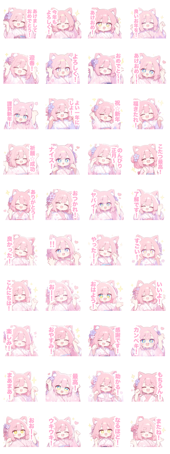 ピンク猫の着物の女の子スタンプ -LINEスタンプマニア