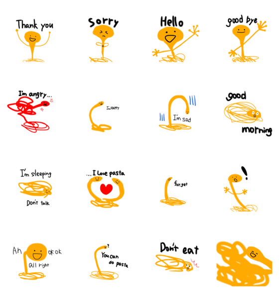 スタンプ説明 アホな面が見られるパスタによるコミュニケーション