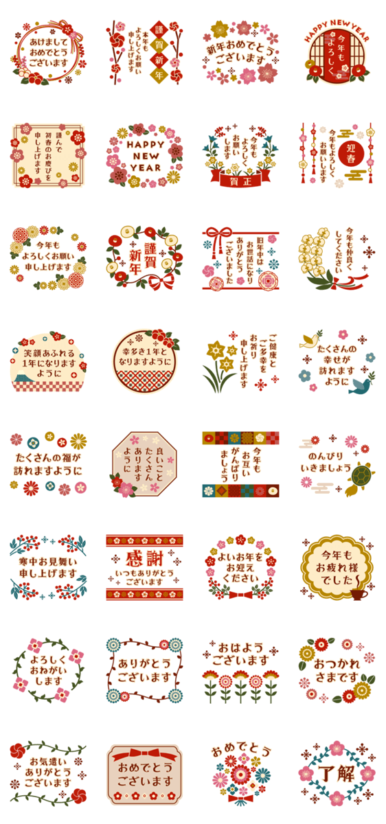 | スタンプ説明 | レトロな大正ロマン風デザインのお祝い&お正月スタンプです。【敬語/大正浪漫/モダン/おしゃれ】 |