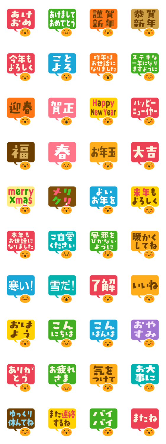 丸い顔の年賀のふきだしスタンプ -LINEスタンプマニア