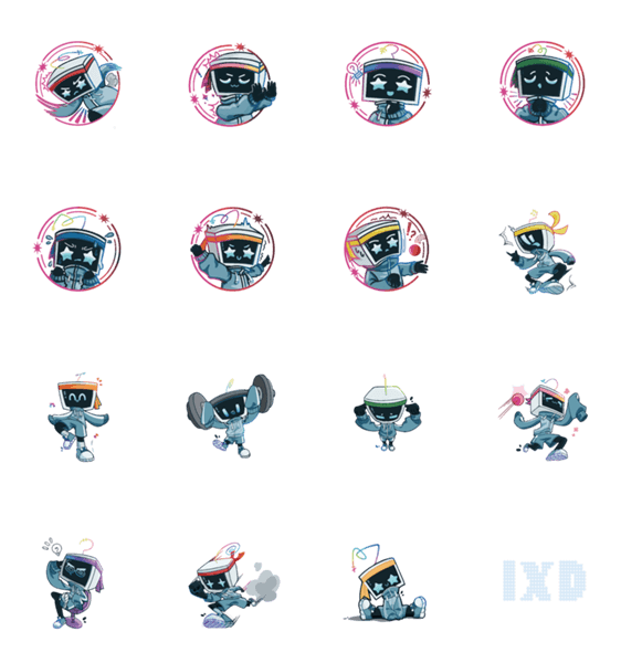 A sticker of a cute character exercising, created as the EXErcise character for the 113.IXD Final Exhibition.