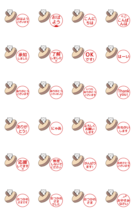 動く。白猫のぷにねこが押す判子☆敬語☆