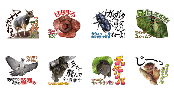 | スタンプ説明 | 「世界の果てまでイッテQ!」珍獣ハンターイモトがフィリピンで大奮闘!「幻の花ラフレシア」や「大きな目が特徴的なフィリピンメガネザル」など激写しスタンプに! |