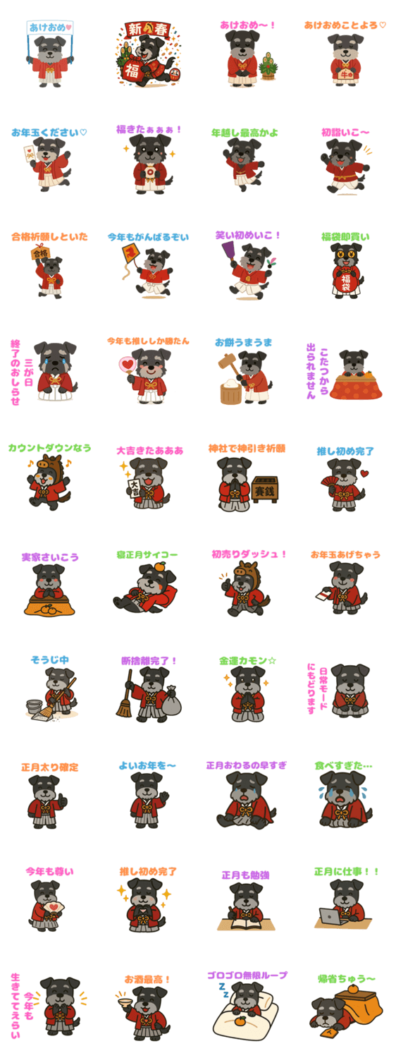正月の格好をしたシュナウザー -LINEスタンプマニア