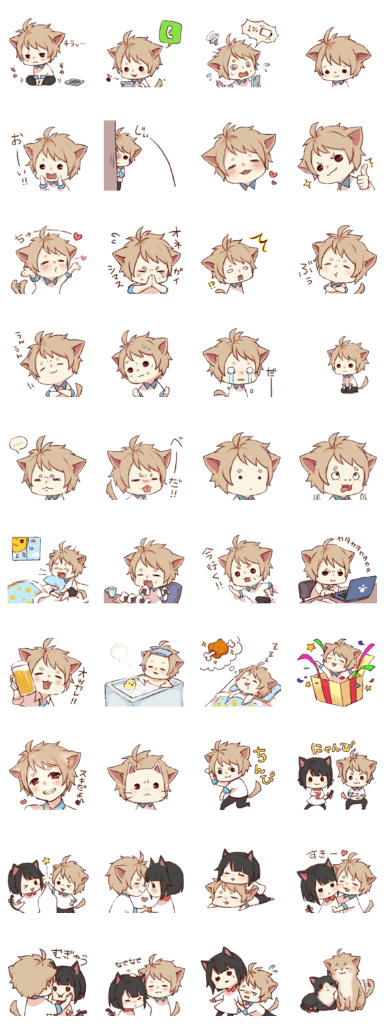 わん太とにゃん子カップルのラブラブな日常スタンプ。わん太30個、わんにゃんペア10個の組み合わせです。にゃんこsideと対になってます。併せてどうぞ!