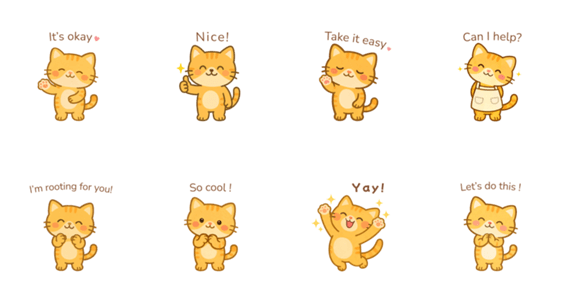 Cute ginger cat stickers full of cheerful and encouraging messages. Perfect for cheering friends up and sending warm feelings in daily chats.