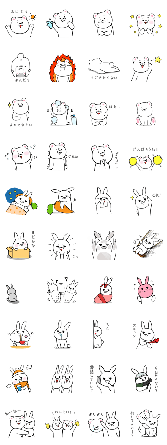 日常で使えるかわいい動物たちのスタンプ。ホッキョクグマのくまきち、ホッキョクウサギのジット。