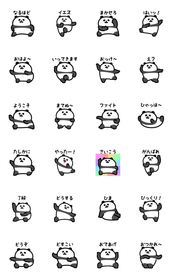 踊るぱんだのアニメーションスタンプです。動く/踊り/おどり/おどる/ダンサー/ダンシング/ダンス部/ポーズ/体操/運動/応援/もちもち/プニプニ/ニコニコ/笑顔/スマイル