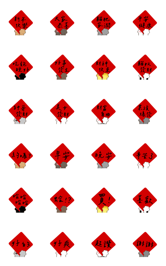 | スタンプ説明 | 新年おめでとうございます!平和と健康、ハンサムな男性と美しい女性の幸運、おはよう、おやすみ、最高、素晴らしい!かわいい猫の足跡の日常。 |