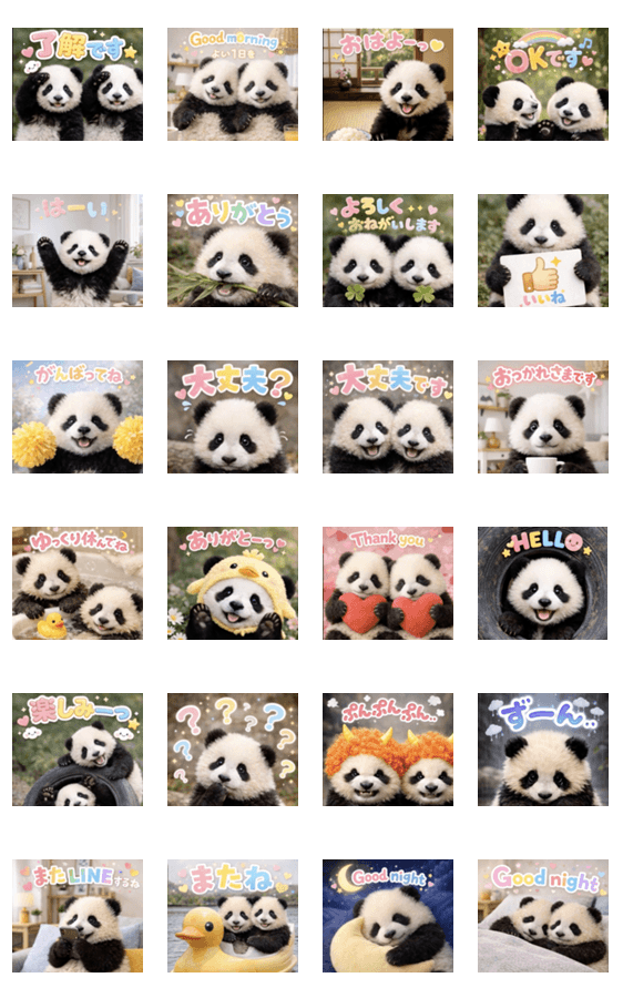 可愛いパンダが飛び出して動く♪日常会話・挨拶のポップアップスタンプです♪