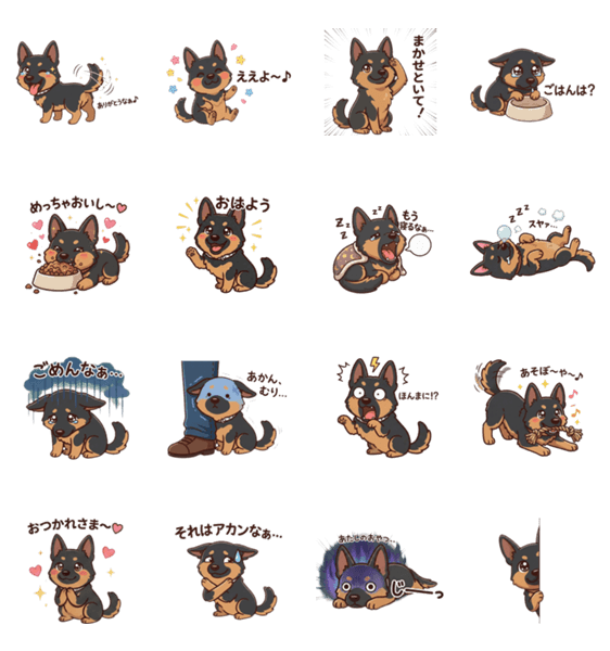 | スタンプ説明 | ジャーマンシェパード・維桜の、かわいい日常スタンプ。 うれしい、ありがとう、あそぼ、ごはん大好き、ねむたい… 毎日のトークで使いやすいスタンプです。 |