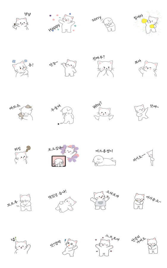 白ネコのあいうえお・・・ってるスタンプ