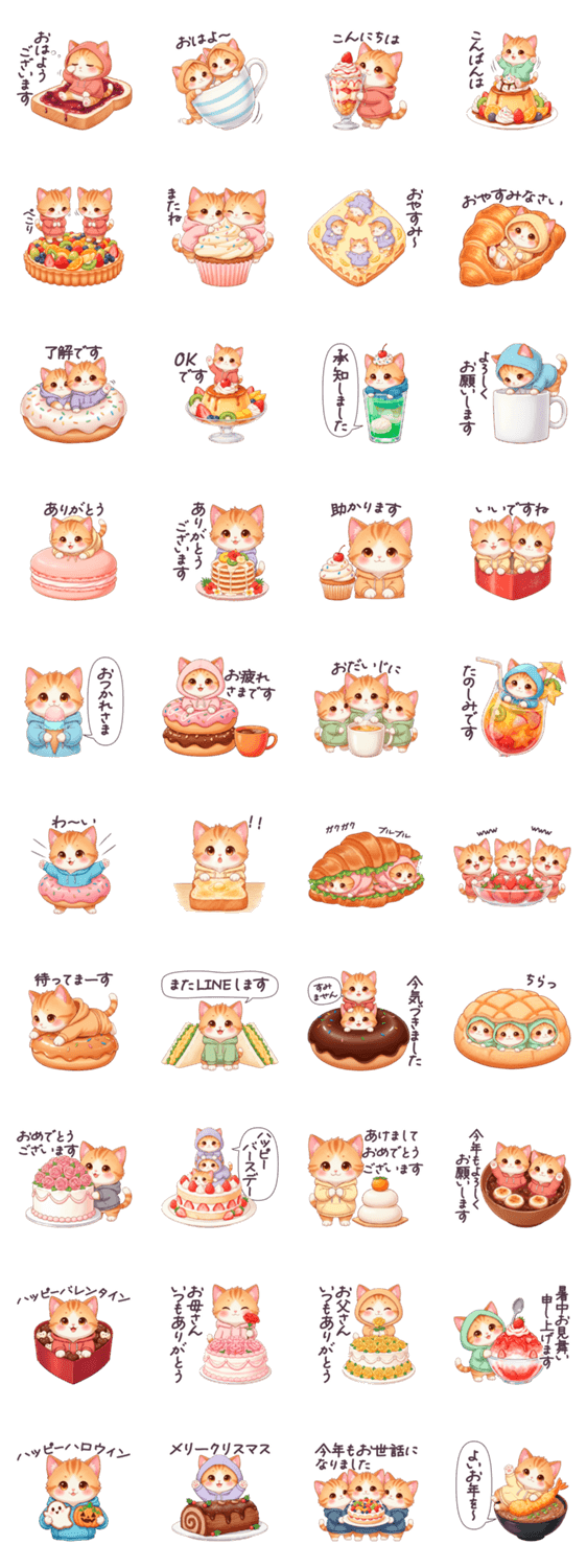 1年中毎日使える パーカーねこ スイーツ -LINEスタンプマニア