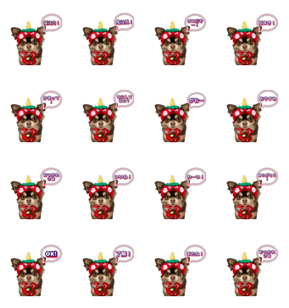 節分にぴったり!可愛い赤鬼の帽子をかぶったチワワのスタンプです。鬼のコスプレで、あなたのトークを可愛く彩ります。