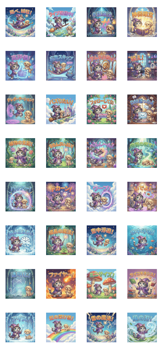 | スタンプ説明 | 猫が操る不思議な魔法✨ SNS向けスタンプの詰め合わせ。 |