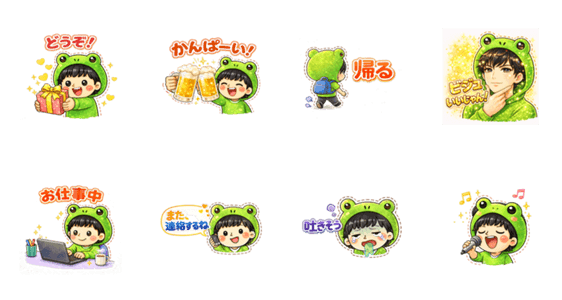 A set of soft, cute stickers featuring a character wearing a frog hat that you can use every day.