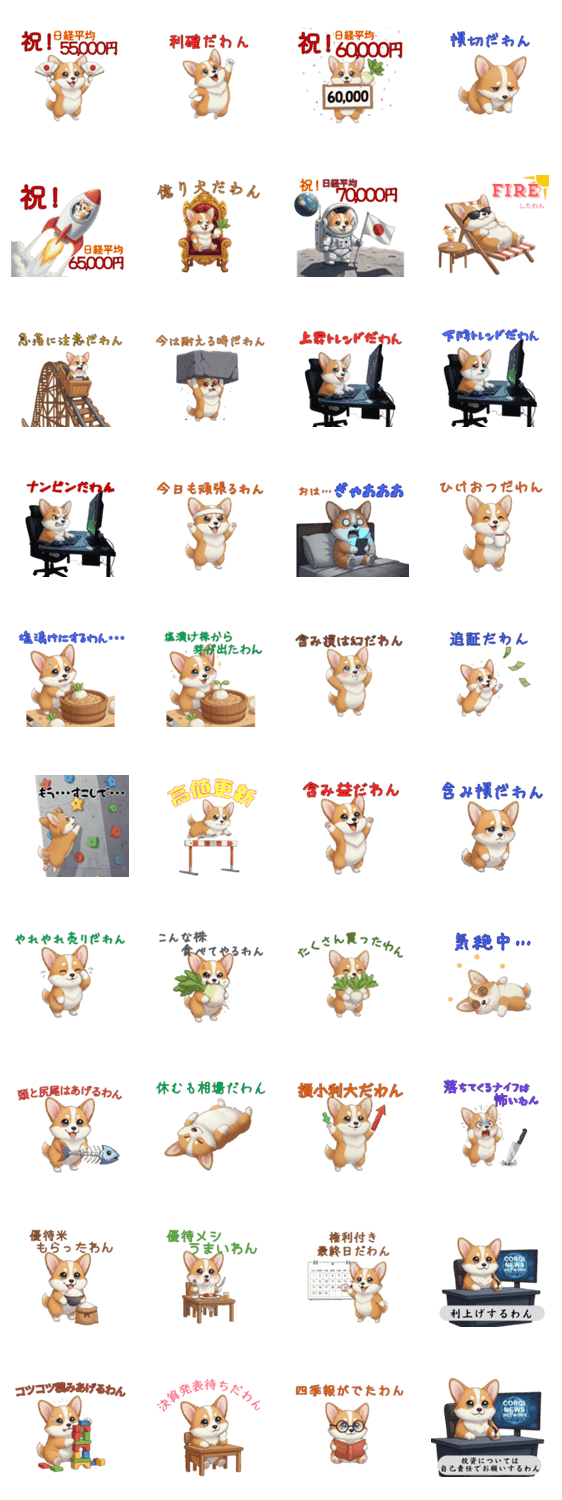 投資犬コーギー 日経平均5.5万〜7万円時代 -LINEスタンプマニア