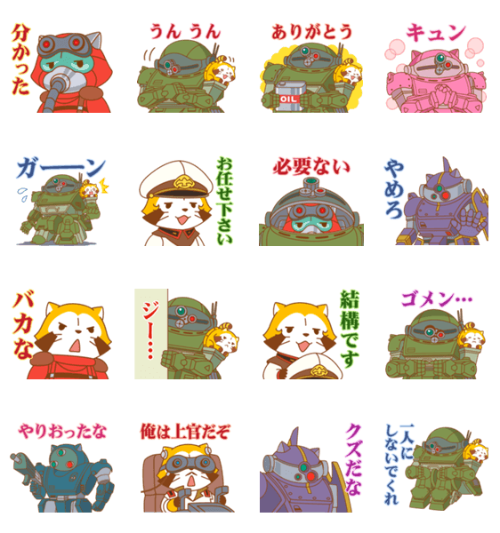 | スタンプ説明 | 装甲騎兵ボトムズとラスカルのコラボスタンプ第2弾! 鉄の騎兵が走る、跳ぶ、洗う。スタンプを買うのに必要なのは、LINEコインと少々の危険。あらいぐまは誰も愛を見ない。 |
