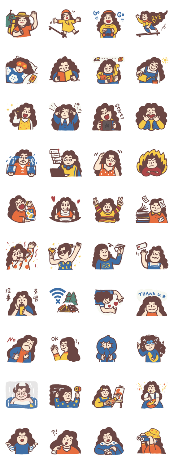 Miss Q is a curly-haired girl who captures everyday moments with simple expressions.