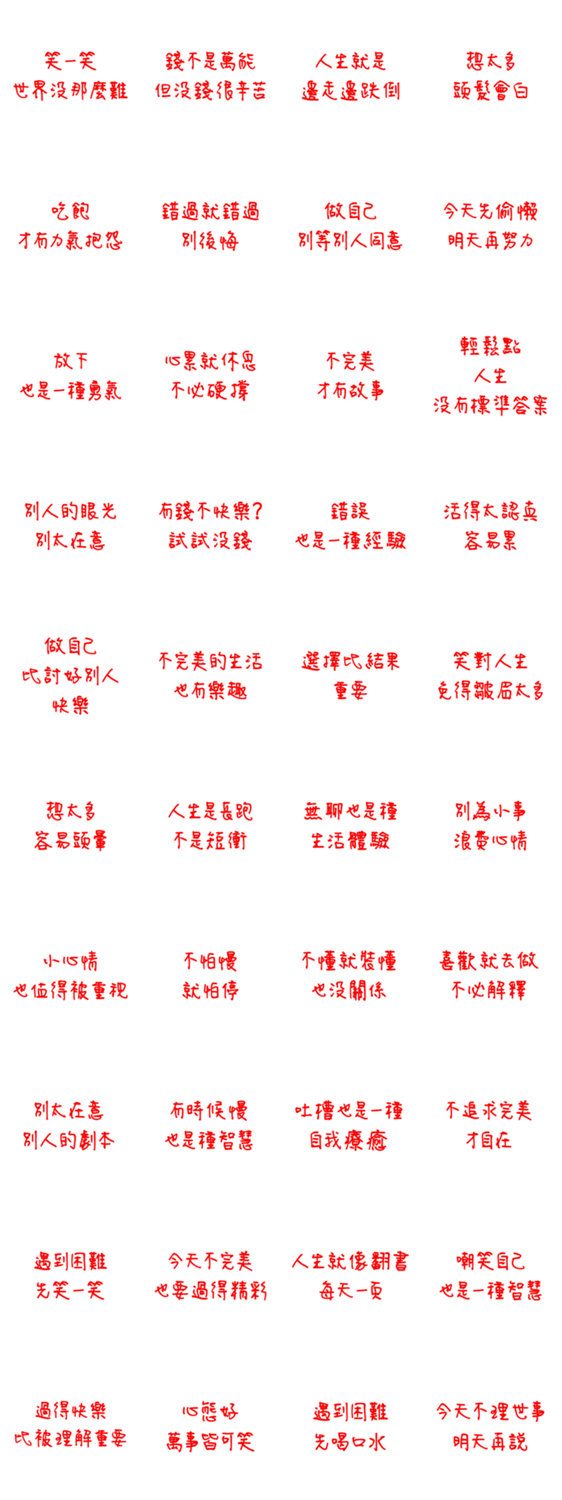 | スタンプ説明 | ネガティブを笑いに変えよう!「今日は今日、明日は明日」といったポジティブな諦めで、心に余裕をくれるメッセージ集です。 |