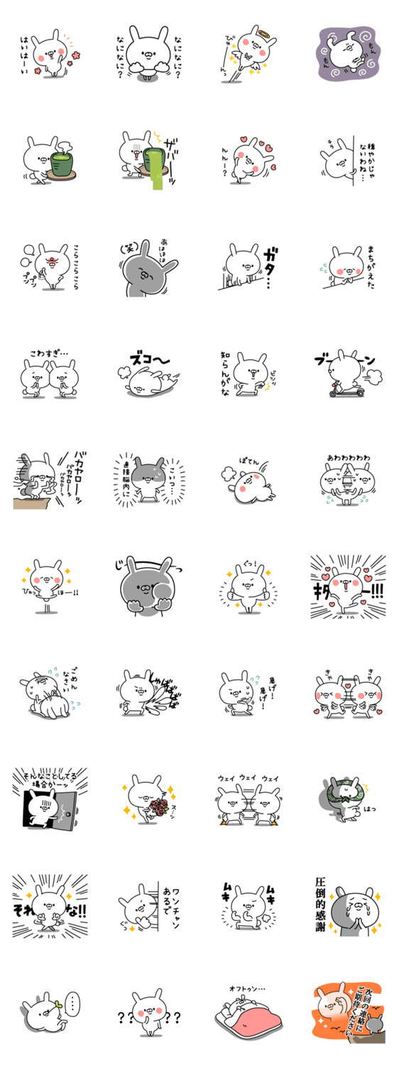 何事にも全力で反応する元気で楽しいパワフルなウサギのスタンプです!