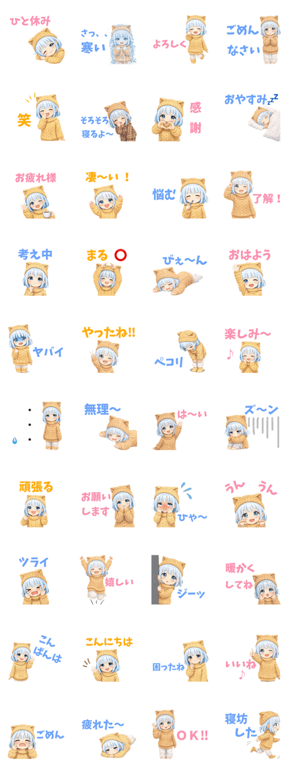 | スタンプ説明 | 猫耳の帽子娘です。こちらはフレーム無しのverで作りました。どちらでも、お好きな方をどうぞ〜 |