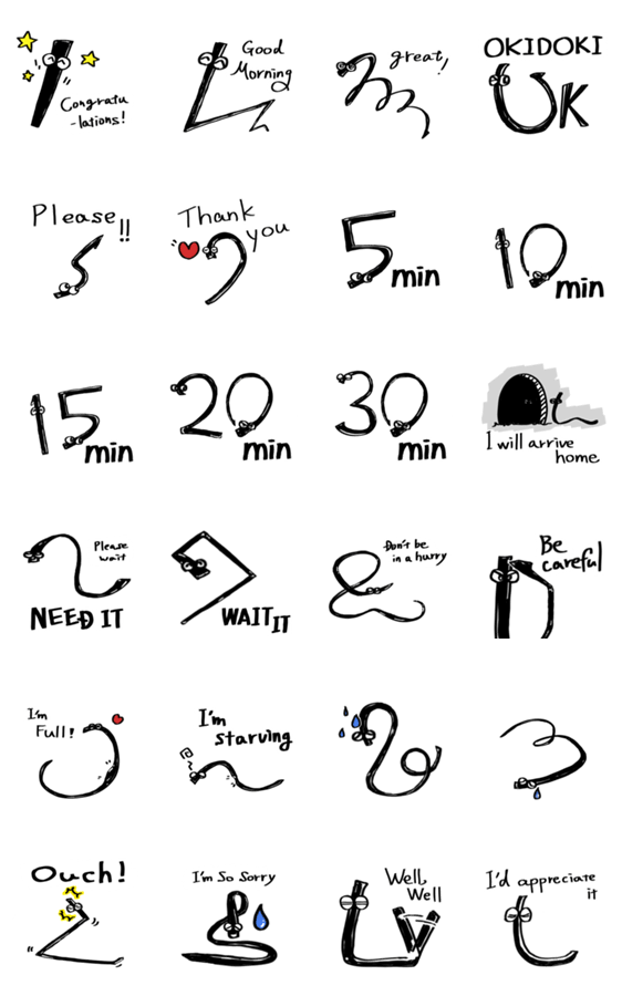シンプルなデザインのLINEスタンプです。 こちらは英語版です。デザインは共通ですが、日本語版と合わせるとよりバリエーションが楽しめますよ。
