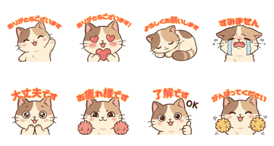 ふんわりしたねこが、丁寧な言葉で気持ちを伝えます。 毎日のやり取りにどうぞ。