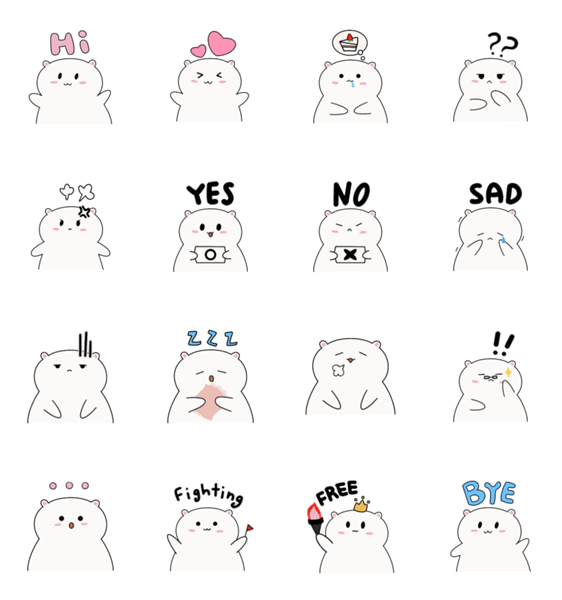 Mei is a gentle character that expresses simple everyday emotions. This sticker set is perfect for daily conversations and emotional reactions.