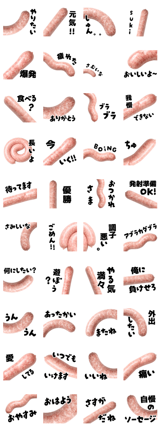 ジューシーに笑おう!ダジャレと面白セリフ満載のブラートヴルストスタンプは、食べ物ネタや笑いに最適。