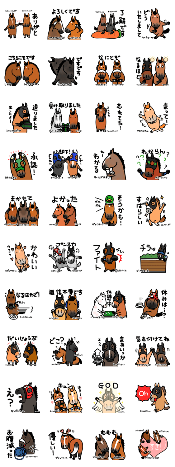 | スタンプ説明 | おがわじゅりデザイン!DMM バヌーシー所属馬のオリジナルスタンプ第4弾が登場! |