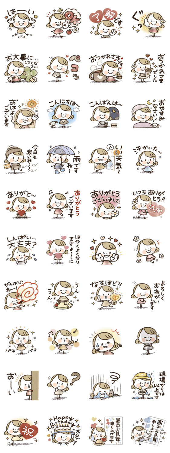 一年中使いやすい女の子のスタンプです♪/見やすい/日常/天気/誕生日/暑中見舞い/寒中見舞い/思いやり/リアクション