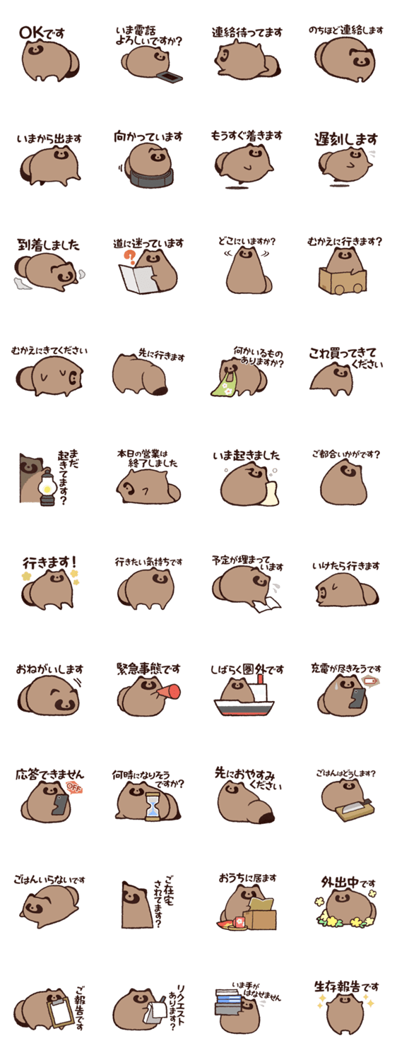 スタンプ説明 たぬきはあらゆるシチュエーションに対応可能です。