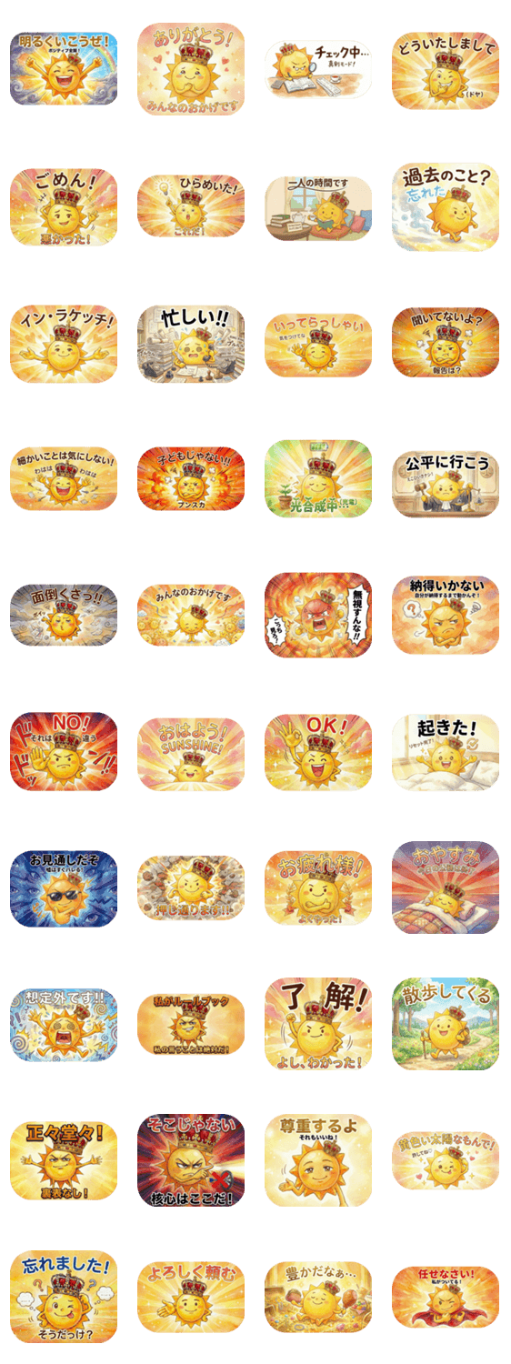 マヤ暦の紋章「黄色い太陽」のスタンプです。明るく豪快な王様キャラで、ポジティブな毎日を!