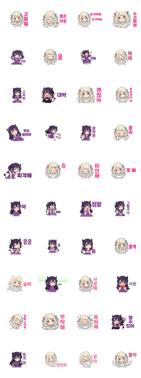 Cute angel and devil stickers for daily chat. Includes 40 stickers.
