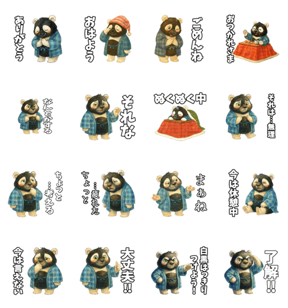 白黒反転したパンダ「ハンテンパンダ」!袢纏を着たパンダがチャットをお手伝いします。使いやすい16枚セットです。
