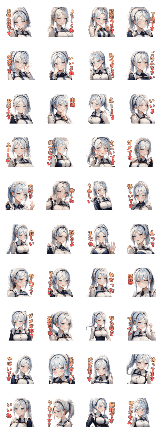 上品で透明感あふれる、美しすぎるメイドさんスタンプ やさしい微笑みと丁寧な雰囲気で、トークに癒しと安心感を添えます。 日常会話に使いやすい、可愛いLINEスタンプです