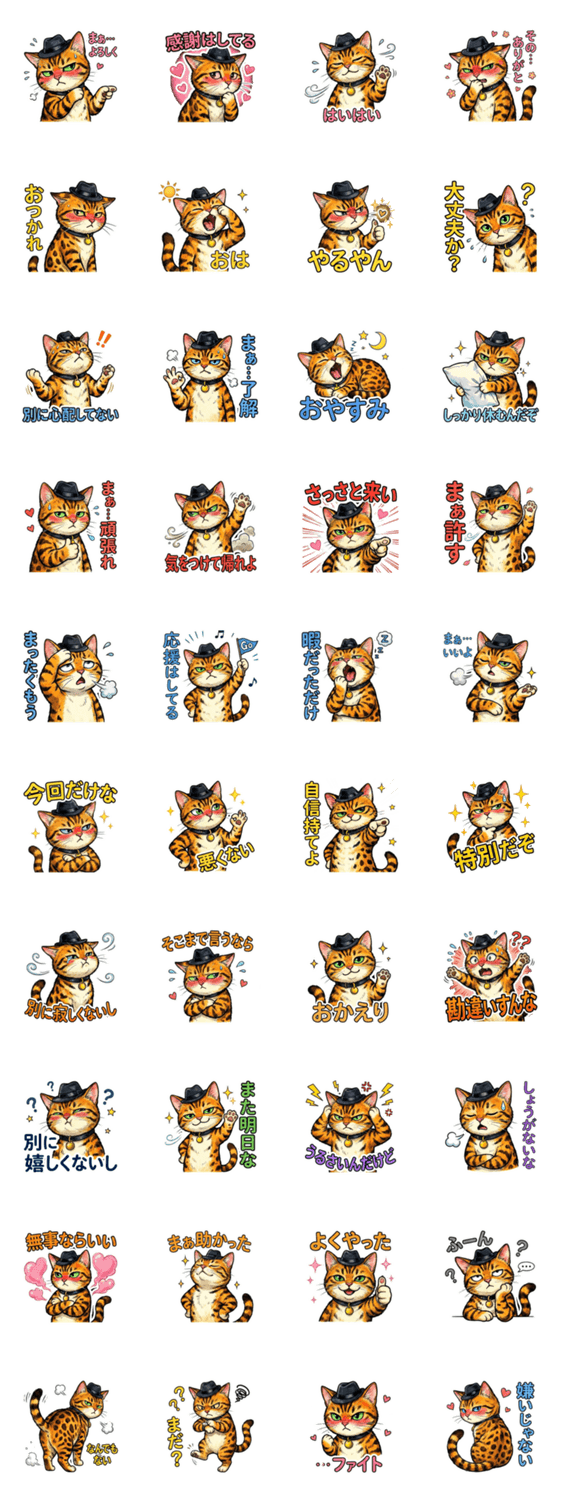 素直に言えないツンデレな猫のスタンプです♫ 毎日使える/一年中/家族/友達/カップル/可愛い/日常会話/猫/ベンガル/ツンデレ
