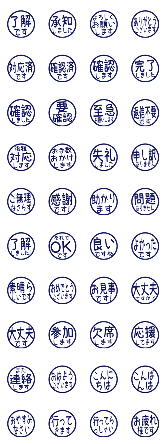 シンプルな敬語のはんこ風スタンプです。毎日の連絡や仕事の返事に使いやすいデザインです。