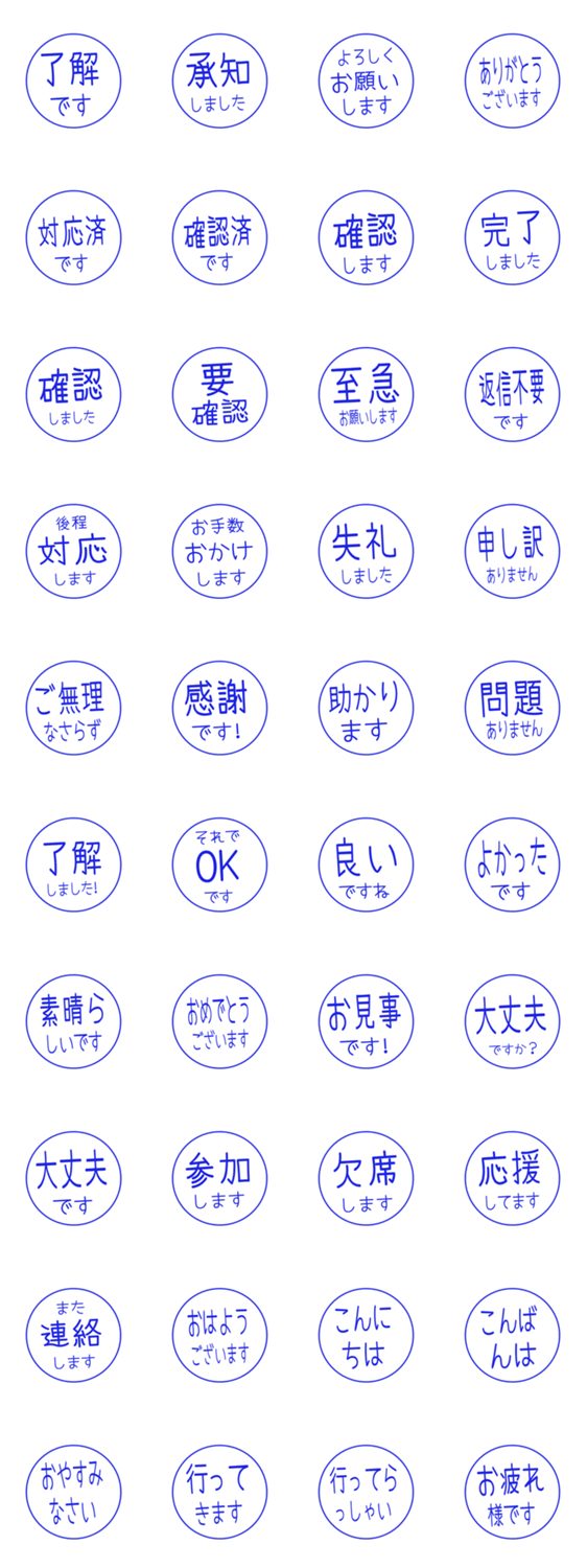 シンプルな敬語のはんこ風スタンプです。毎日の連絡や仕事の返事に使いやすいデザインです。