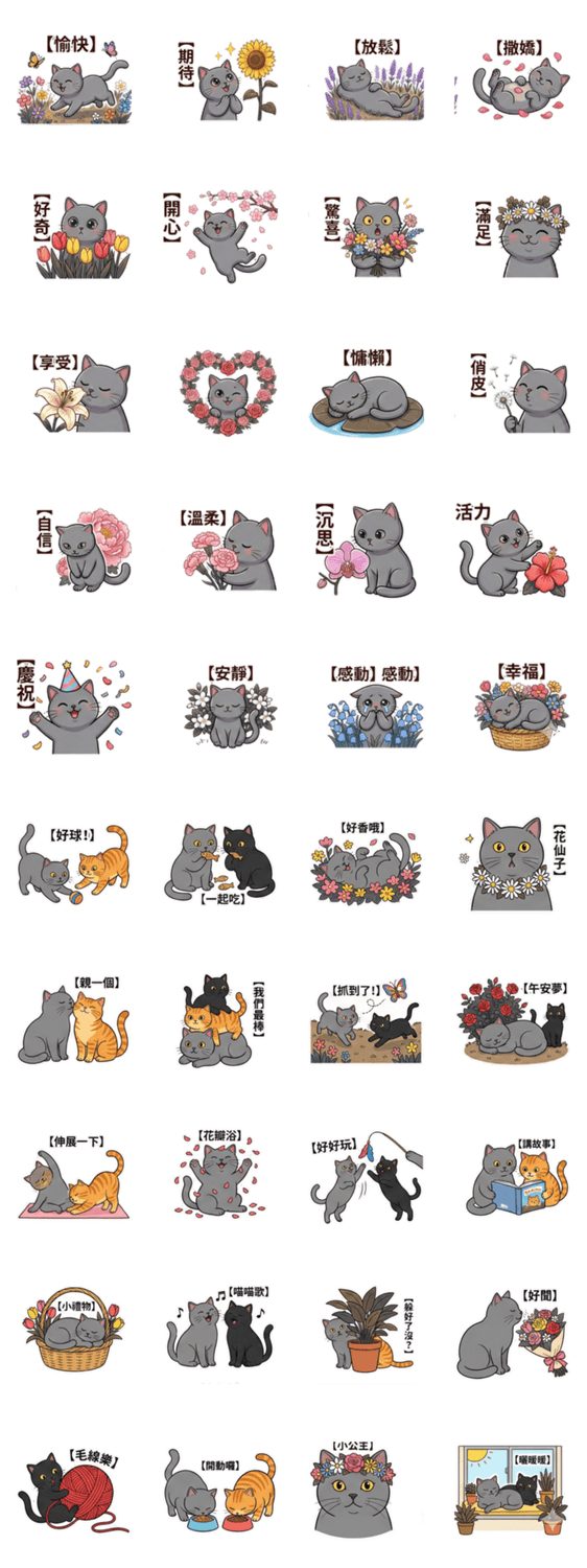 | スタンプ説明 | Meet this round-faced blue cat in a dreamy floral world! Express your moods with stickers, perfect for adding a soft, cozy touch to chats. |