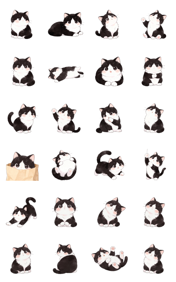 | スタンプ説明 | 白黒模様がチャームポイント!ふわふわのハチワレ猫がスタンプになりました。水彩画のような優しいタッチで、毎日のトークをほっこり癒やしてくれます。 |